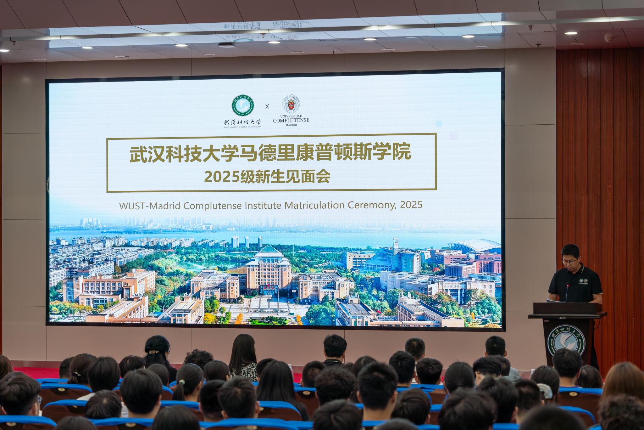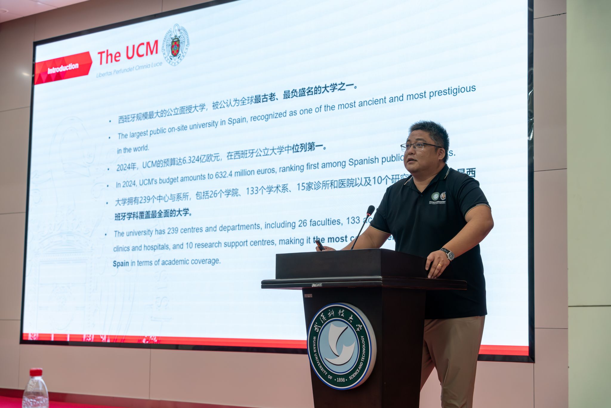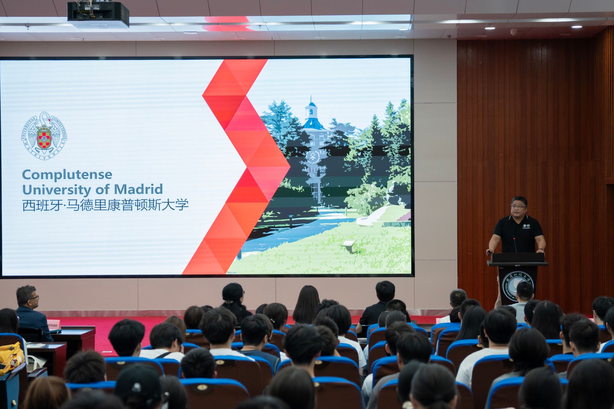 马德里康普顿斯学院鞠磊书记主持会议中景 王铭浩摄