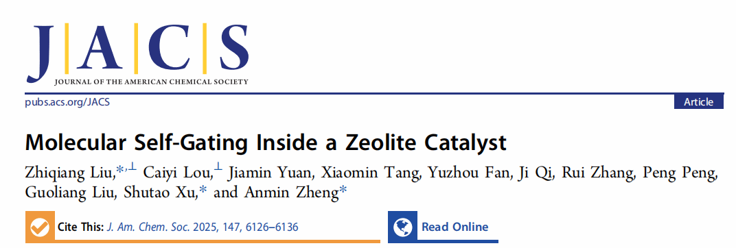 武科大网讯(通讯员刘志强)近日,我校核磁共振与分子科学交叉研究院/化学与化工学院教授刘志强、郑安民团队与中科院大连化物所合作展开研究,在《Journal of the American Chemical Society》发表了题为“Molecular self-gating inside a zeolite catalyst”的重要研究成果(DOI: 10.1021/jacs.4c17510)。该研究在分子筛限域孔道中观测到分子扩散过程中的“自门控”现象,创新性地揭示了分子筛通过“交通堵塞(traffic jam)”与“交通顺畅(smooth traffic)”动态平衡调控分子扩散的微观机制,为选择性吸附分离、高压传感与高压存储等领域的应用奠定了重要的理论基础。论文通讯作者为刘志强、徐舒涛和郑安民教授,我校为论文第一完成单位。