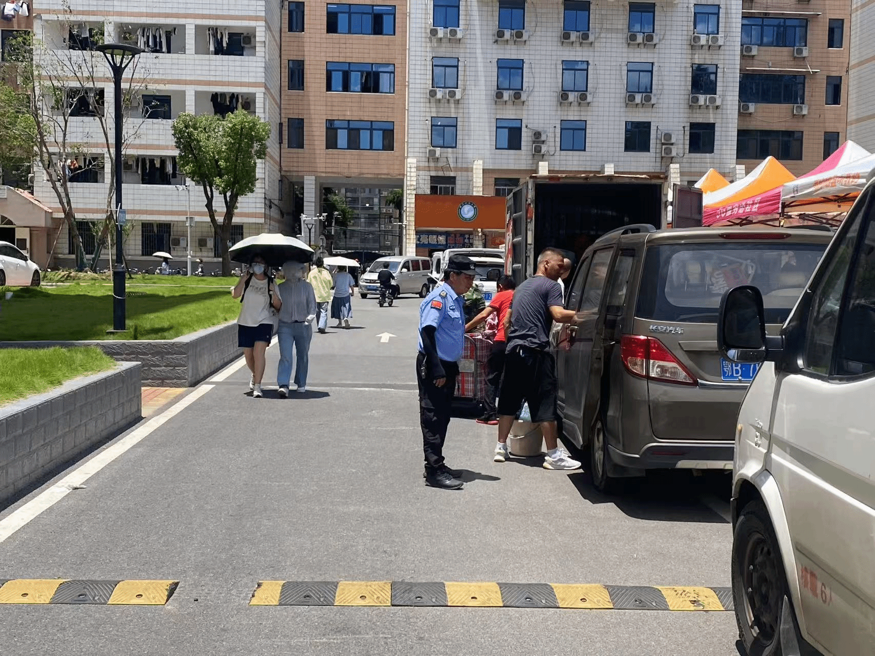 搬迁期间,保卫人员全员上阵,顶烈日、冒酷暑,坚守岗位,严格落实交通疏导与秩序维护。在搬迁主要通道上,保卫人员化身“交通信号灯”,耐心指挥过往车辆,确保运输车辆顺畅通行;在宿舍楼栋入口处,他们细心引导人流,严防拥堵踩踏。针对搬迁期间人车流量激增、高温天气等挑战,保卫处及时启用新建成的学校安全风险研判及应对管理平台“智慧安防”系统,通过校园110指挥中心实时掌握各区域动态,及时调度人员处置突发情况;安排巡逻队员对重点区域开展24小时巡查,严防物品丢失或错拿,确保搬迁工作平稳推进。